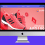 The hero section features a vibrant red gradient background that instantly grabs attention, complemented by a high-resolution product image placed on a realistic rock surface to highlight durability and outdoor performance. Clear branding elements and product-focused messaging ensure that the shoe remains the central focus of the design.
